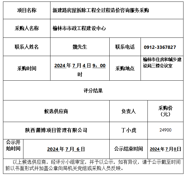 新建路房屋拆除工程全过程造价咨询服务结果公示