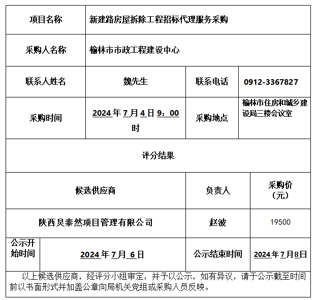 新建路房屋拆除工程招标代理服务采购结果公示