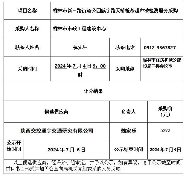 榆林市新三路街角公园航宇路天桥桩基超声波检测服务结果公示