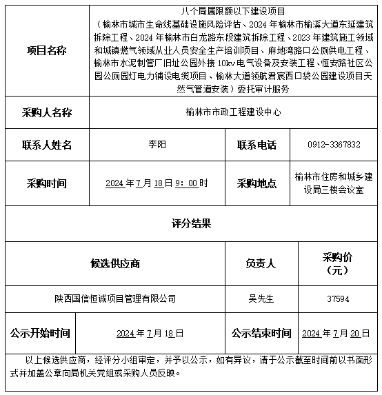 八个局属限额以下建设项目委托审计服务采购结果公示