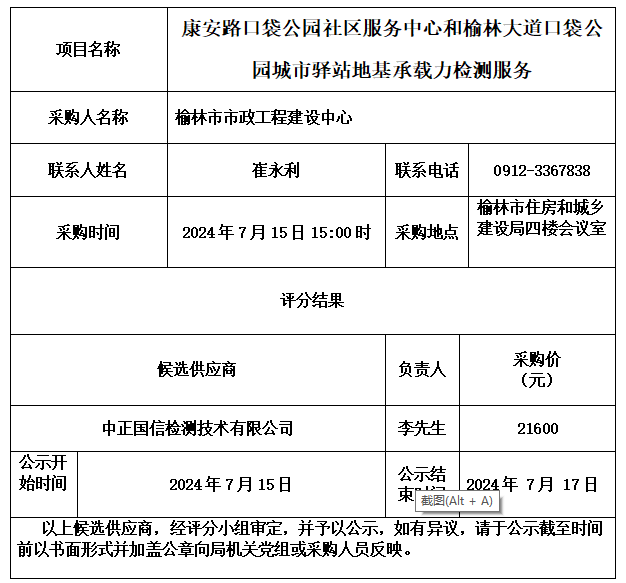 康安路口袋公园社区服务中心和榆林大道口袋公园城市驿站地基承载力检测服务公示